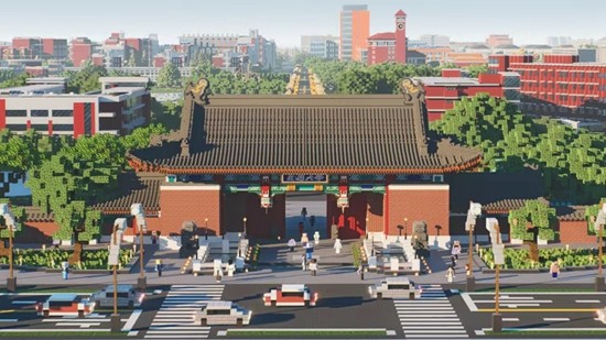 上海交通大学Minecraft社以沙盒游戏“我的世界”为载体,基于三维重建、虚拟现实和人工智能技术,用1亿+方块构建虚拟实景校园“方块交大”。60余名交大学子以心为砖、以爱为瓦,突破时空限制,打造新时代青年跨界畅游校园“第二空间”,获评2023上海市高校活力社团。