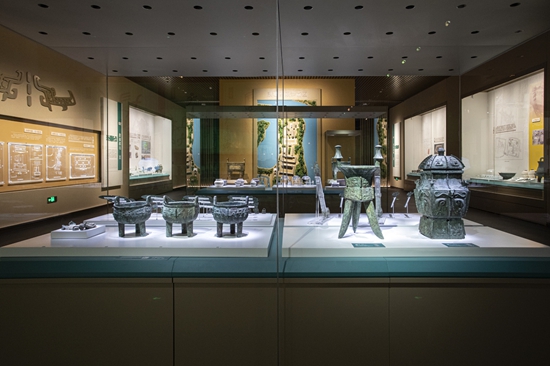 赵清荣:新馆的面积约为旧馆15倍,是首个全景式展现商文明的国家重大专题博物馆。馆内展出青铜器、陶器、玉器、甲骨等文物近4000件套,其中四分之三以上的珍贵文物为首次亮相。