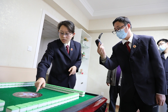 宿迁检察机关的办案检察官来到网约房调研,发现网约房摆设有酒和麻将机。万晓东/摄