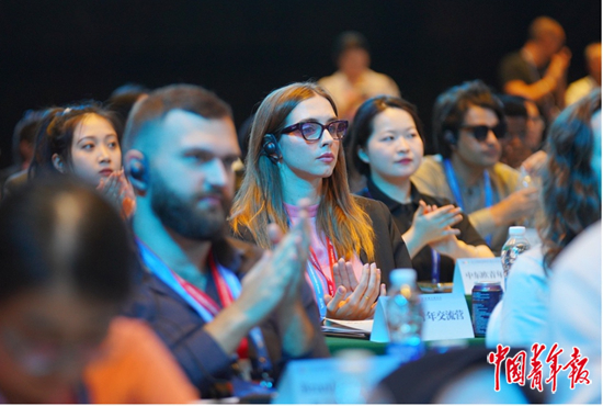 8月15日,重庆,2024年世界青年发展论坛数字发展主题论坛会场,中外青年代表聆听主旨演讲。中青报·中青网记者 李峥苨/摄