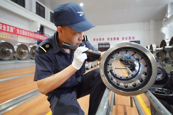 每天快速、准确地发现车轮配件的安全隐患,就是汪召坤的必修课。同自行车一样,旅客列车车轮轴承里也有很多滚珠,用来支撑轴承使其转动,在列车行进时,起到减小摩擦力、提高轴承使用寿命的作用。