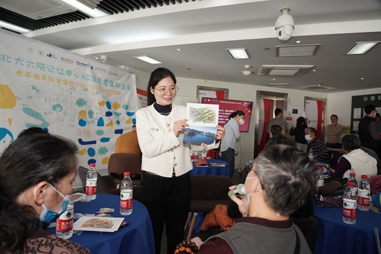 在北京大学第六医院记忆障碍诊疗与研究中心为阿尔茨海默病家属举办的联谊会上,志愿者教老人们制作手工艺品。本文图片均由受访者提供