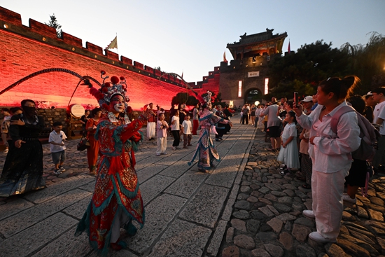 8月21日,游客在观看“大明边塞”之夜游黄崖关系列演出。暑期,位于天津市蓟州区的黄崖关长城风景区推出“大明边塞”之夜游黄崖关文旅项目,通过沉浸式演出展示当地历史文化资源,丰富了游客的旅游体验。新华社记者 赵子硕/摄