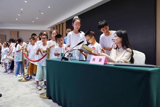 8岁小学生杨帆今年过了一个有意义的暑假,他和妈妈从福建省漳州市跨越山海,来到辽宁省大连市,8月12日-15日,他和来自全国各地的230余名诗词少年参加了“2024出口成章·诗词少年英雄荟”研学营活动。