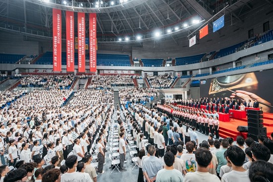 8月28日,西北大学举行2024级新生开学典礼,全体师生合唱《西北大学校歌》。西北大学供图