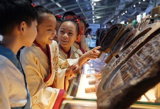 9月11日,孩子们在参观传统手工糕饼模具。 中秋佳节来临之际,江西省南昌市青云谱区组织中小学生来到中华糕饼模具大世界,通过讲述中秋民俗故事、介绍糕饼模具发展历史、开展传统手工月饼制作体验等活动,让孩子们感受中国传统文化的独特魅力。新华社记者 万象/摄