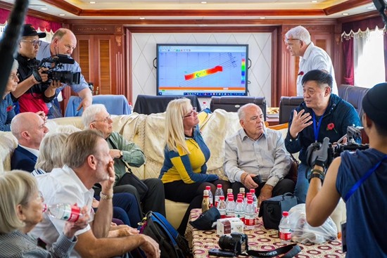 2019年10月,方励与盟军亲历者后代在前往沉船海域的船上交流。本版图片均由受访者提供
