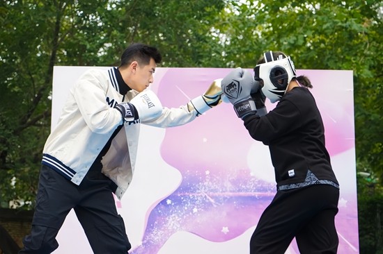 中国传媒大学Bstars散打社成员在“百团大战”现场进行动作展示。受访者供图