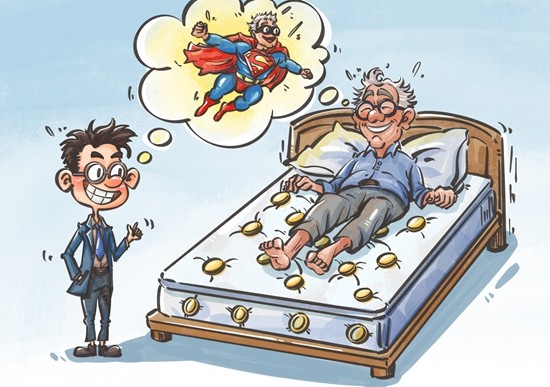 近日,万元保健床垫被指虚假宣传能治病引发关注。这些床垫被夸大效果,声称具有改善睡眠、治疗疾病甚至延年益寿的功效。然而,这些床垫实际上并没有什么特别之处,大多数是由小工厂、小作坊生产的。商家推销这些床垫时,通常采用给老年人洗脑、放大疾病危害、进行虚假的感情投入等手段,诱导老年人购买。市场监管相关部门已经开始采取行动,对涉嫌虚假宣传的保健床垫生产和销售企业进行调查,并要求停业整顿。漫画:程璨