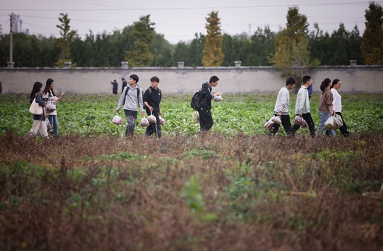 10月16日,“大手拉小手,共享丰收景”秋收节在北京农学院耕读教育实践基地举行。来自北京农学院、北京大学、北京科技大学、华北电力大学、中国音乐学院、北京市第一〇一中学昌平实验学校的近600名大中小学师生共采丰收果实,同上一堂田间地头“大思政课”。视觉中国供图