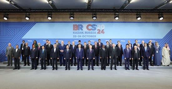 当地时间10月24日上午,国家主席习近平在喀山会展中心出席“金砖+”领导人对话会并发表题为《汇聚“全球南方”磅礴力量 共同推动构建人类命运共同体》的重要讲话。这是出席对话会的金砖国家及嘉宾国领导人或代表、国际组织负责人集体合影。新华社记者 姚大伟/摄