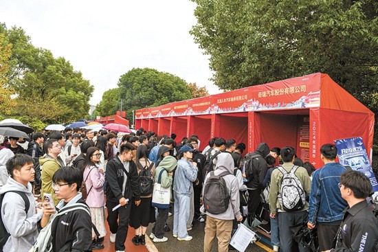 当天的秋雨没有阻挡求职的热情,现场也贴心准备了热姜茶和雨衣,为求职者与招聘企业送上温暖。当天线下活动汇聚了200余家优质企业,携万余个优质岗位广纳贤才,吸引了国内外461所高校的2万余名高校毕业生现场求职。