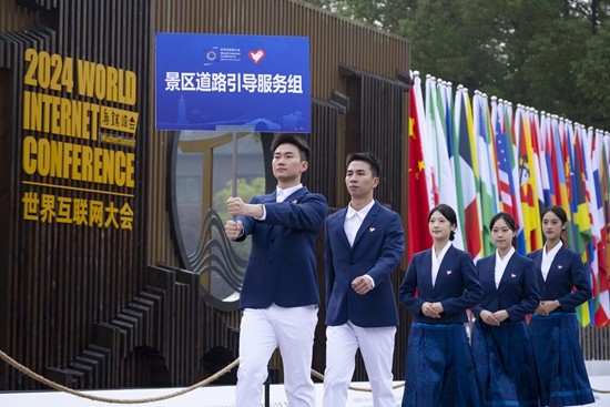 11月13日,2024年世界互联网大会乌镇峰会举行志愿者出征仪式。“小梧桐”志愿服务品牌与世界互联网大会乌镇峰会携手进入第十一个年头。团浙江省委供图