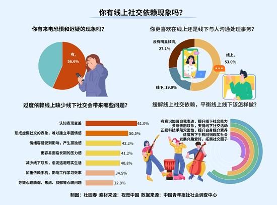 上周,中国青年报社社会调查中心联合问卷网(wenjuan.com),对1335名受访者进行的一项调查显示,56.6%的受访者有来电恐惧或迟疑,且年龄越小这种情况越凸显。长期依赖线上社交,68.0%的受访者感到自己线下社交能力有所退化。