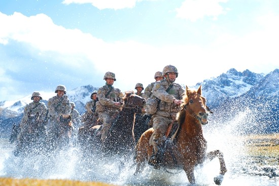 近日,陆军第76集团军某骑兵连在陌生地域组织骑术课目训练,锤炼官兵过硬本领。图为官兵向陌生地域发起冲锋。文明/摄