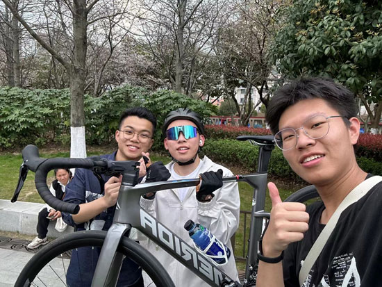 “骑行时,会在路上遇到其他骑行者,虽然互不认识,但会在爬坡时互相打个招呼,或者喊一声加油。”在骑行中,来自重庆大学的万齐发结交了自己的“骑友”,“我们是在线下店‘提车’时认识的,碰巧我们的款式颜色都很相近,就留了联系方式,方便之后约着骑行”。